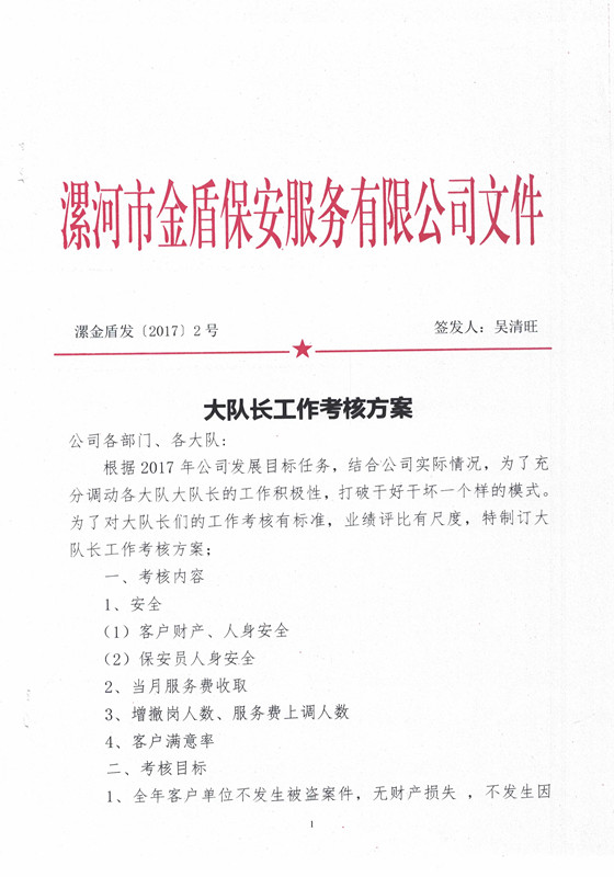 2017年大隊長工作考核方案