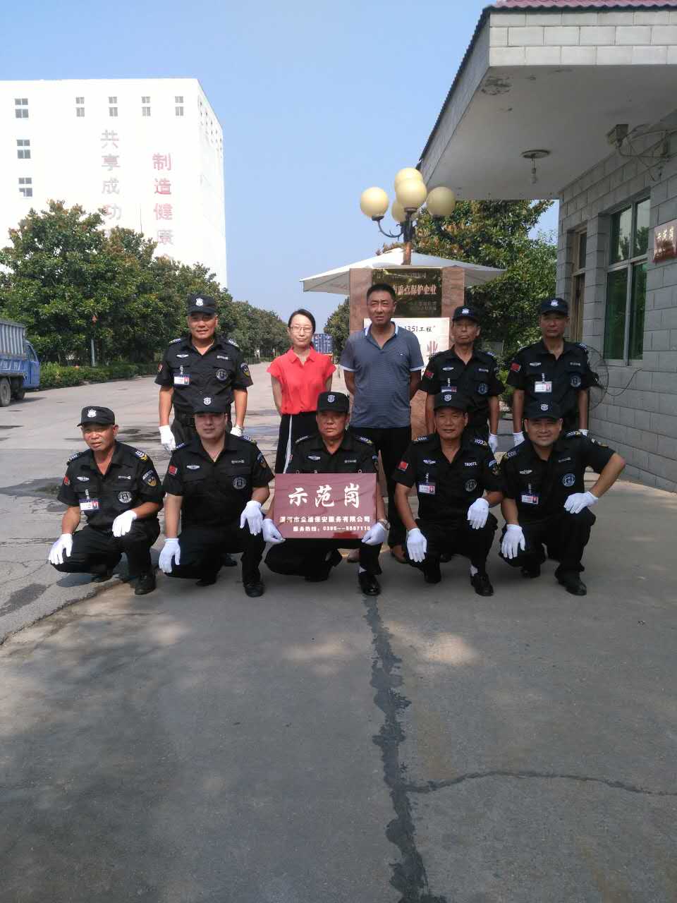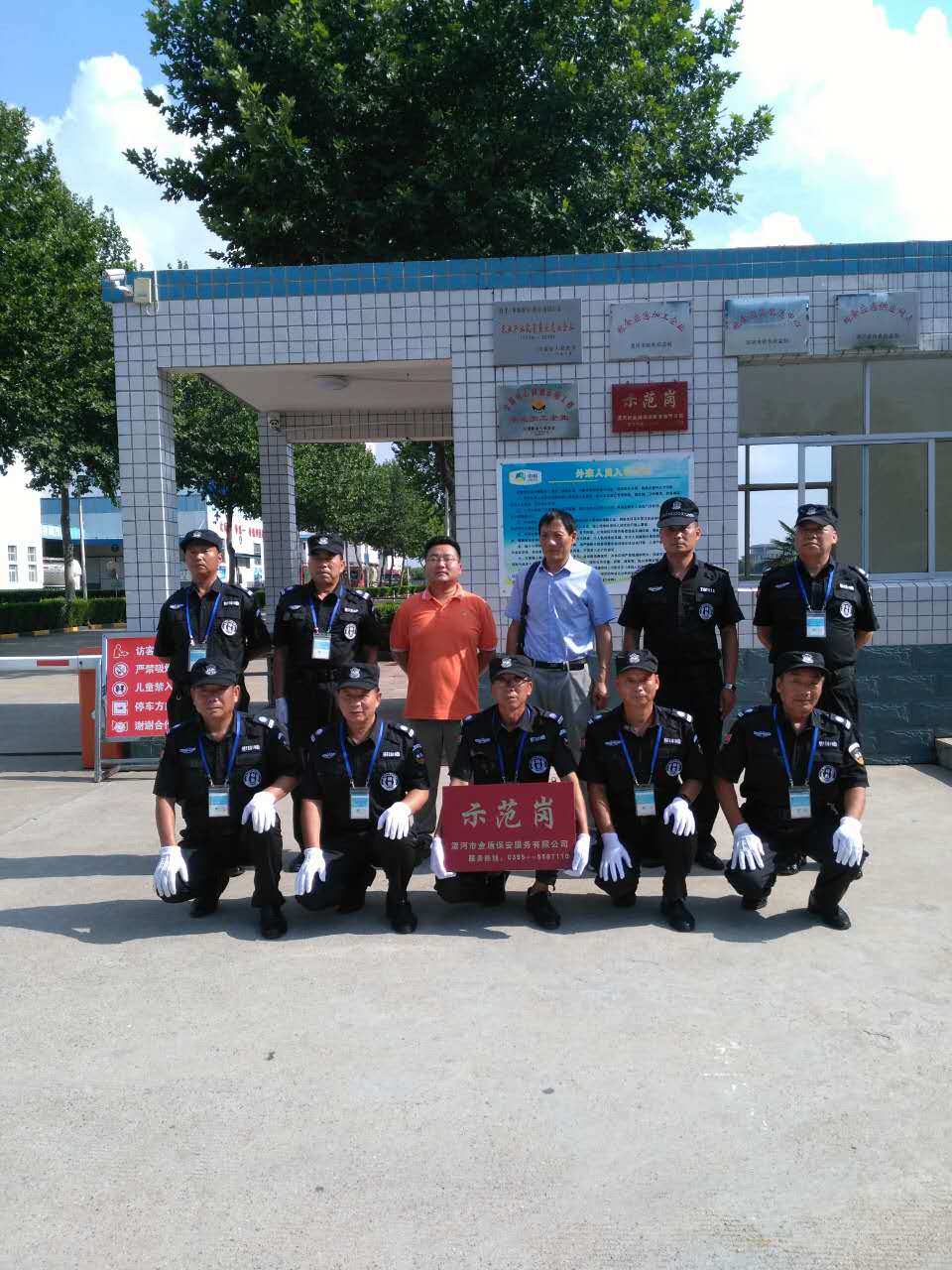 金盾保安公司副總經(jīng)理海永軍同志代表公司總經(jīng)理?xiàng)瞰I(xiàn)軍同志攜公司督察隊(duì),邀請(qǐng)沙北派出所領(lǐng)導(dǎo)參加“示范崗”授牌儀式,依據(jù)“示范崗”標(biāo)準(zhǔn)及走訪客戶(hù)單位了解工作情況,公司領(lǐng)導(dǎo)研究決定: