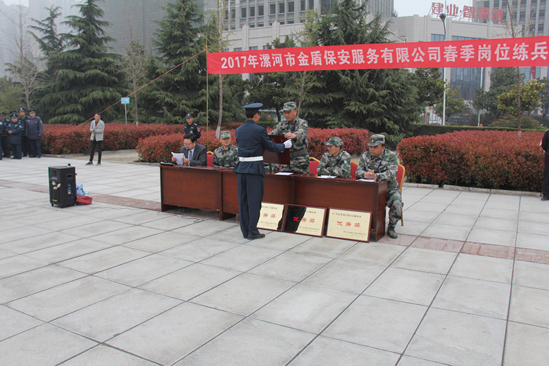漯河市金盾保安服務(wù)有限公司本著“立足崗位練兵、重在集訓(xùn)提高”的練兵要求,公司從3月1日-3月30日開(kāi)展全體隊(duì)員春季崗位大練兵活動(dòng),為確保這次“大練兵”活動(dòng)有序開(kāi)展,切實(shí)收到實(shí)效,上到公司總經(jīng)理,下到大隊(duì)長(zhǎng)等公司相關(guān)人員積極探討,精心組織,周密安排,堅(jiān)持高標(biāo)準(zhǔn)、嚴(yán)要求,本次練兵活動(dòng)于3月31日正式匯報(bào)演練。