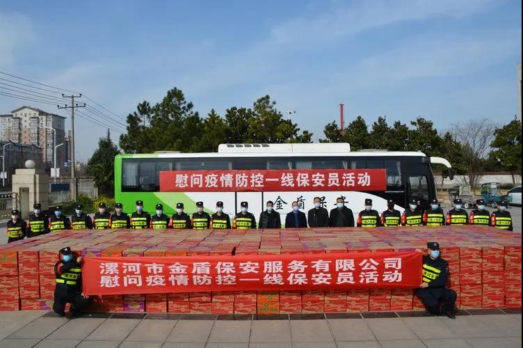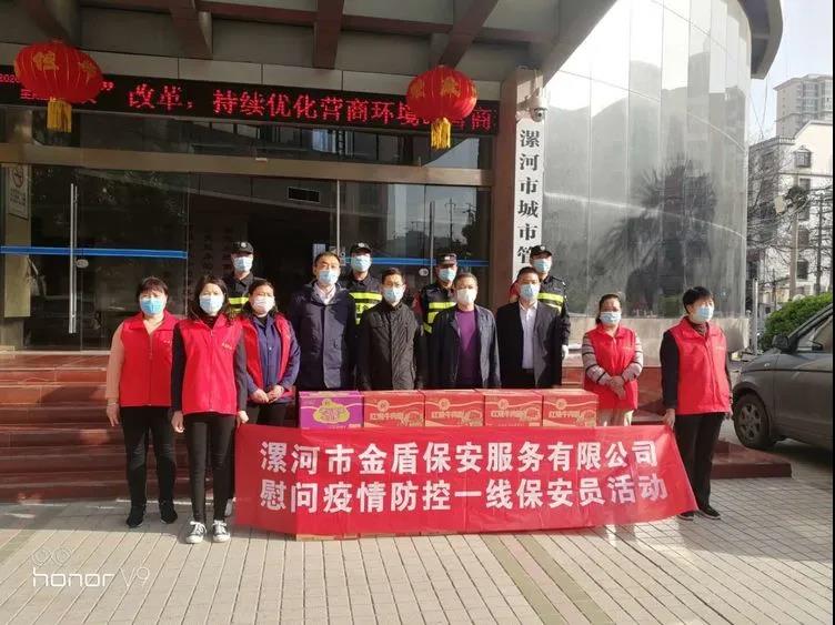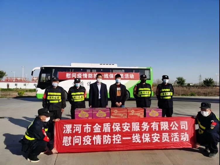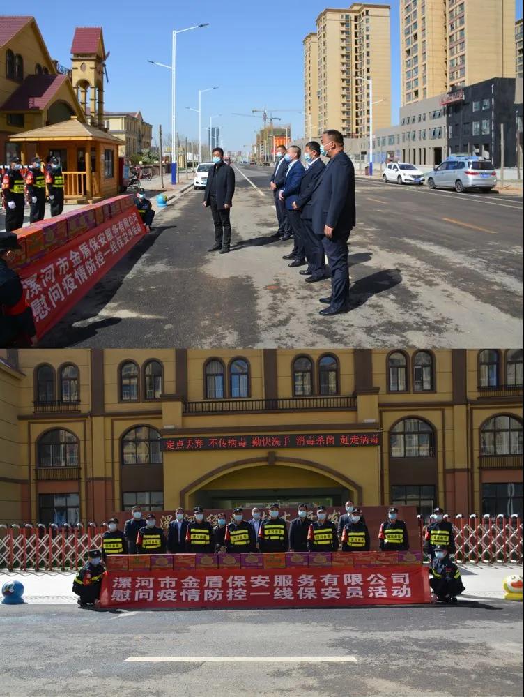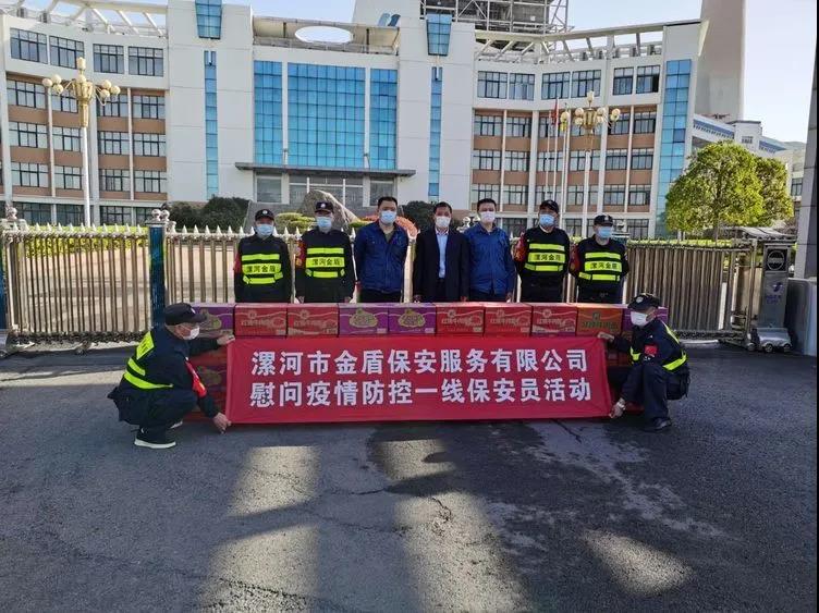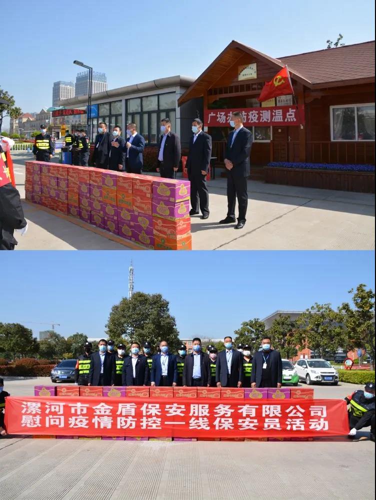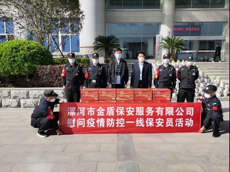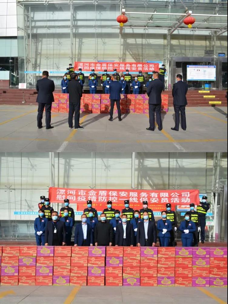 ▼源匯區(qū)機(jī)關(guān)事務(wù)服務(wù)中心綜合科科長(zhǎng)張娜與公司領(lǐng)導(dǎo)班子共同慰問堅(jiān)守在疫情防控一線的保安員代表。