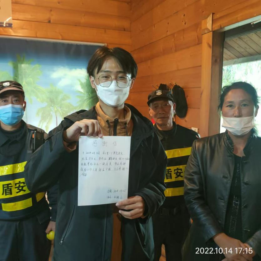 ? 恰巧的是,當(dāng)日的值班保安吳軍嶺在執(zhí)勤時,發(fā)現(xiàn)在健身器材上掛著一個小包,于是撿起來送到了值班崗?fù)ぃ却е髑皝碚J(rèn)領(lǐng)。17點左右失主前來景區(qū)尋找,經(jīng)核實包內(nèi)物品并查看監(jiān)控錄相確認(rèn)無誤后,保安員吳軍嶺親手將包還給了失主。“非常感謝,沒想到我的包還能找到,你真是個拾金不昧的好保安呀!”失主激動地握著保安員吳軍嶺的手連連道謝并寫下感謝信以示感謝。